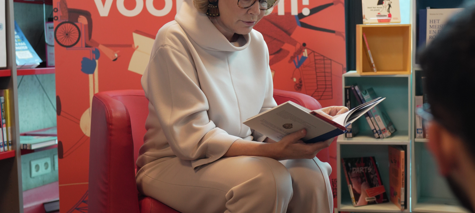 Hoog bezoek in jongerenbib Kubus van de Antwerpse bibliotheek Permeke. Niemand minder dan koningin Mathilde kwam langs om de Voorleesweek, een initiatief van Iedereen Leest, te openen. Ze las voor aan enkele jongeren en ging met hen in gesprek over (voor)lezen, mentaal welzijn en verbinding. Reporter Imania Silva Gomes maakte er deze video over.